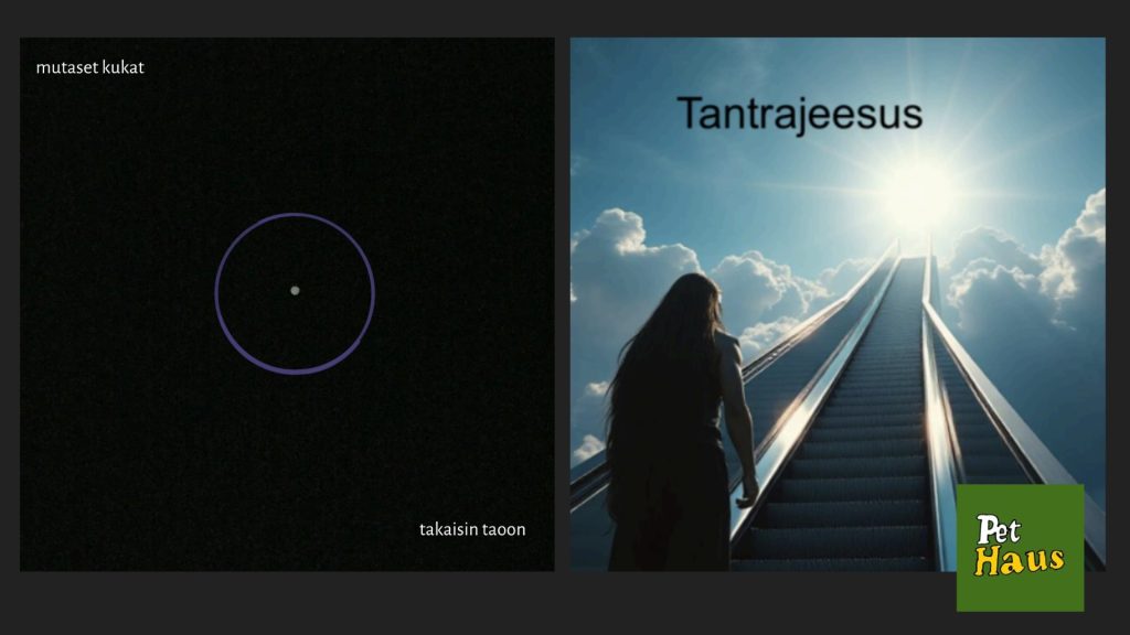 Tantrajeesus on suomalainen rock-lahko. Keikoilla porukka viedään mukaan höyrysaunailtojen tarinatuokioihin, baaritiski-filosofiaan ja hämärään henkisyyteen. Setti on enemmän yhteisöllinen messu kuin siisti keikka: kitarat ulvovat, laulut raikuvat ja jokainen saa olla hetken pyhä jyssäys. Tantrajeesus on vahvistunut kanttorilla ja toisella mailalla. Sisältää vertauskuvallisia opetuksia.