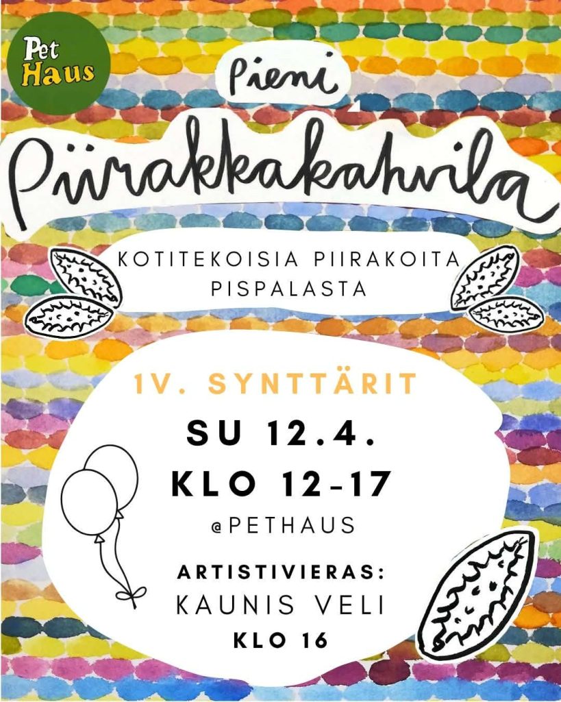 Melko lailla tasan vuosi sitten päivänvalon ensikerran kokenut Pieni Piirakkakahvila juhlii pikkuisesti synttäreitään ensi viikon sunnuntaina 12.4. klo 12-17, Pethausilla tietenkin!